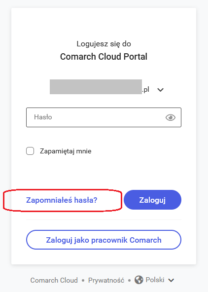 (Jeśli nie pamiętasz hasła do Comarch Cloud Portal, możesz je zresetować używając funkcji „Nie pamiętam hasła”)